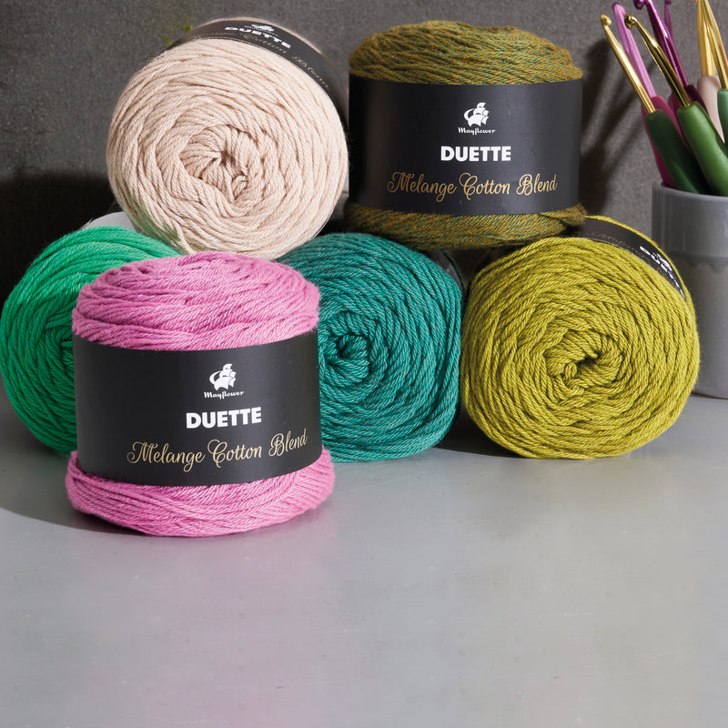 Początki Mayflower opierały się głównie na włóczce bawełnianej, która obecnie została uzupełniona o wiele innych interesujących i wysokogatunkowych włóczek, cenionych przez miłośników dziergania.