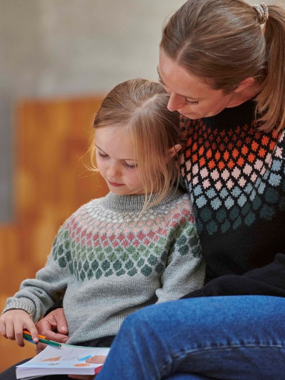 Dorthea sweater findes også i en børneudgave. Find opskriften lige her.