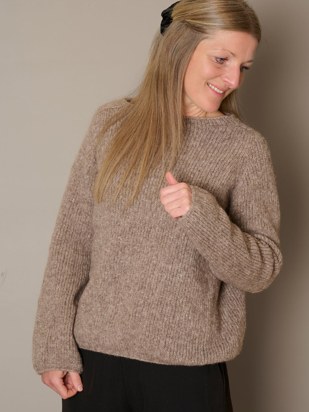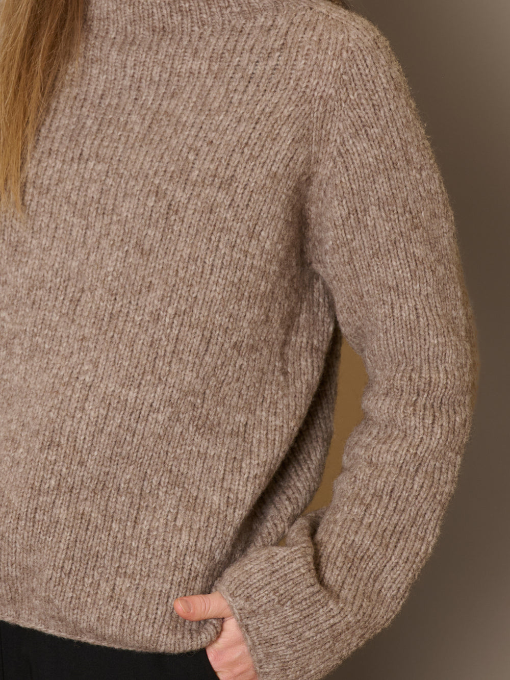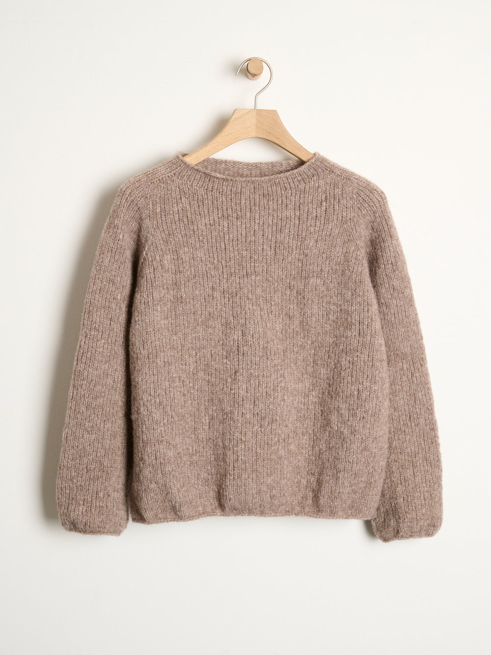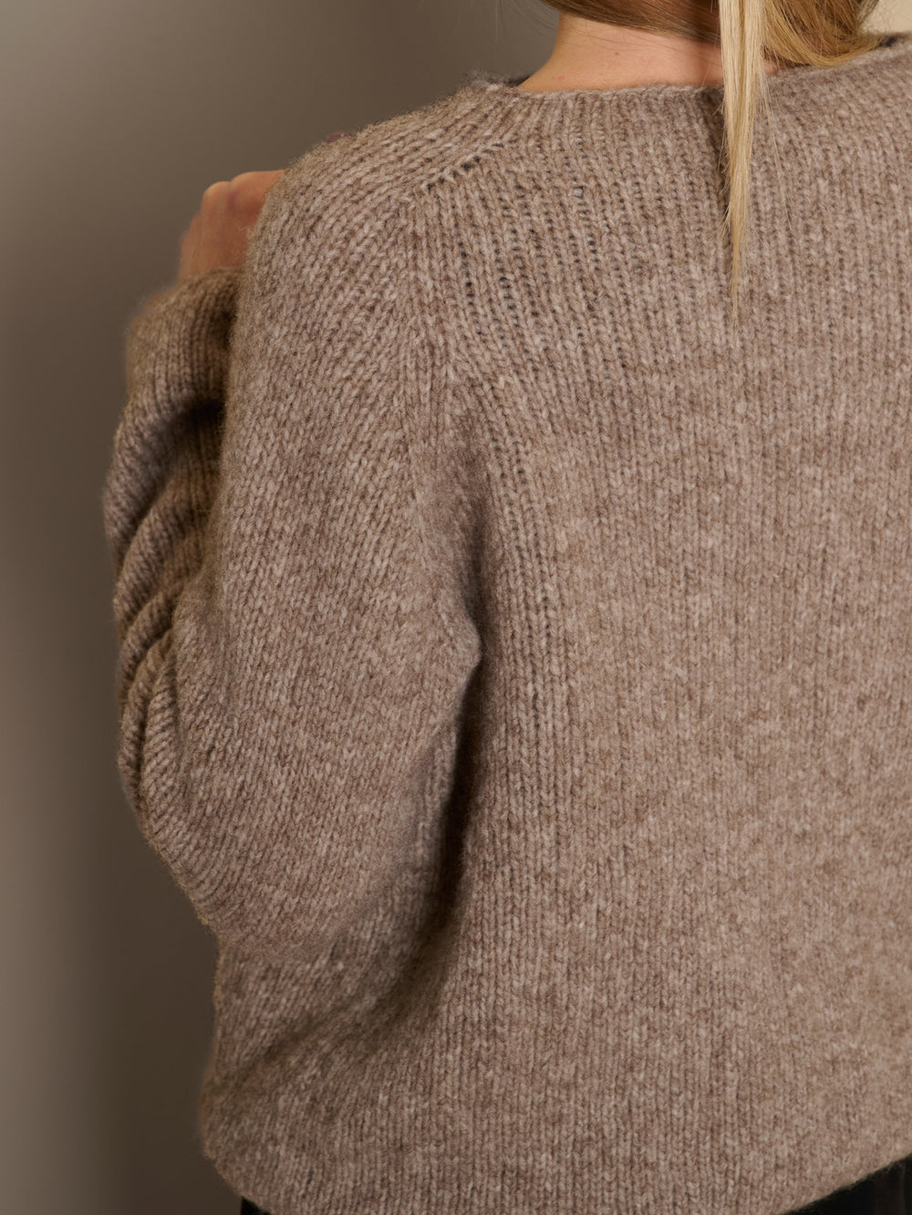 Ivy sweateren strikkes topdown med raglanudtagninger i bærestykket og vendepinde i halsen. Sweateren strikkes i glatstrik.