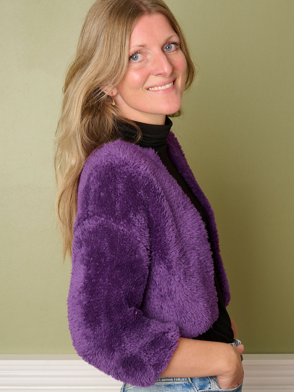 Denne sjove og smarte, korte jakke er strikket i Mayflower More Fake Fur, som giver jakken et fint og feminint udtryk. Fordi det er en kort jakke, fungerer den nærmest som et accessorie til dit outfit.