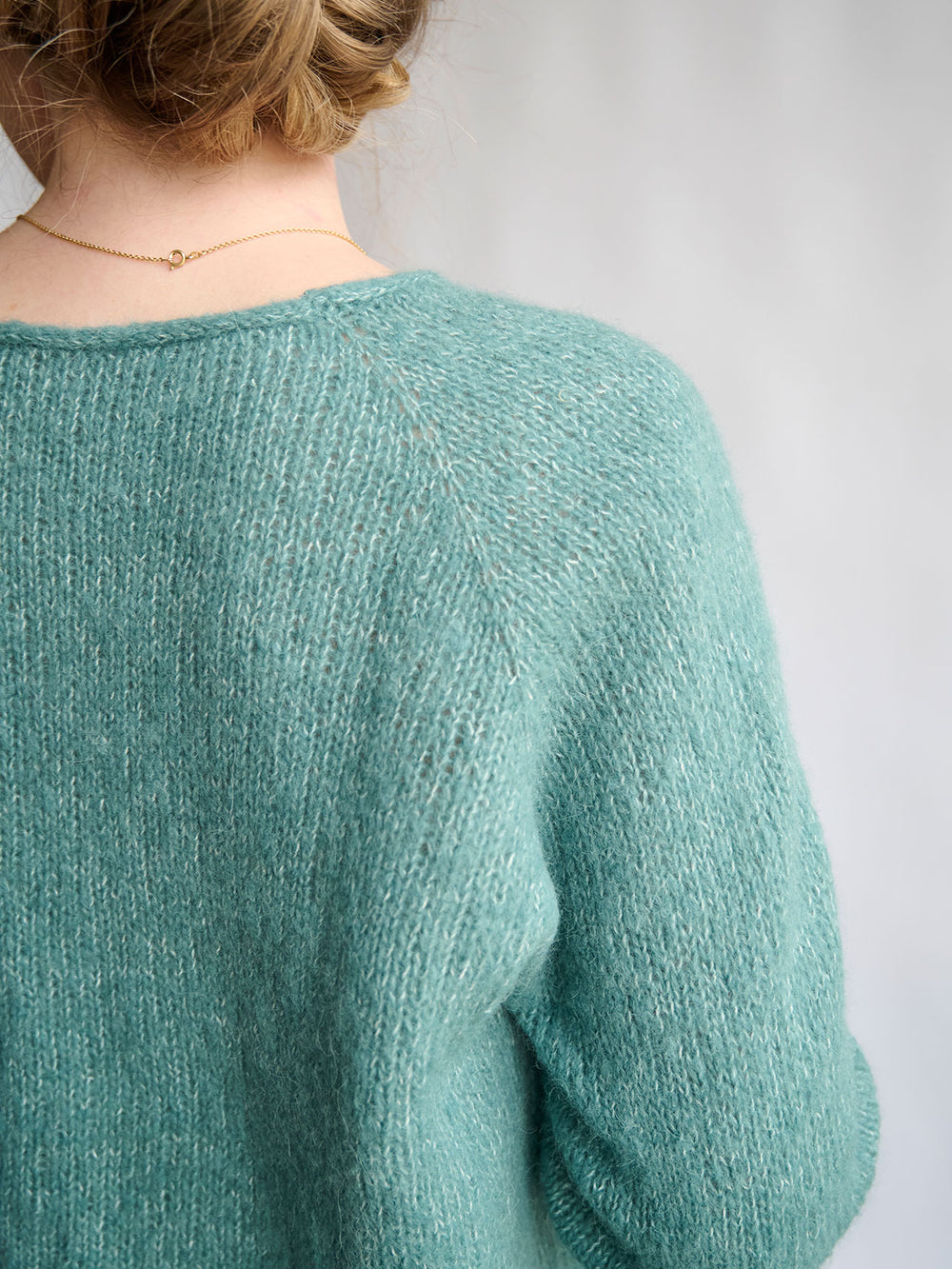 Kumulus bluse o-neck fra PetiteKnit bliver strikket oppefra og ned med rund halsudskæring. Blusen strikkes i glatstrik og med i-cord kanter som en fin afslutning.