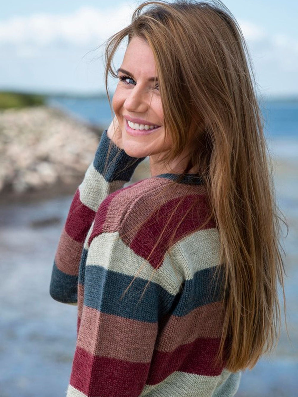 Designet er strikket i Mayflower Easy Care, som er ren, blød uld. Kvaliteten er dejlig at arbejde med, og resultatet er en lun og lækker trøje, som kroppen nemt kan ånde i. Garnet kan tilmed vaskes i maskine og tørretumbles.