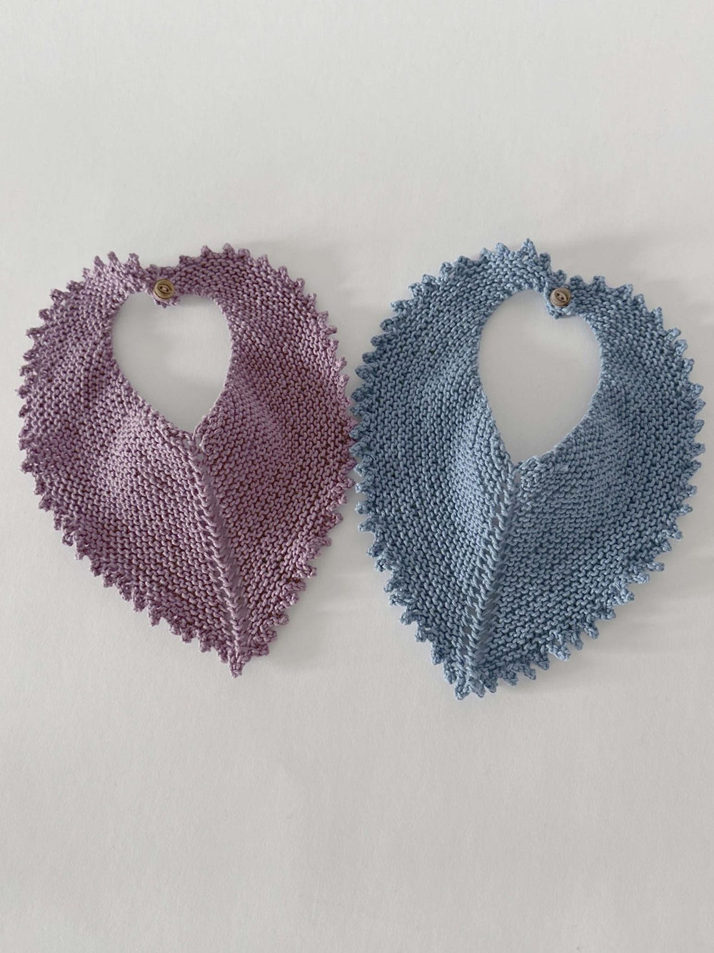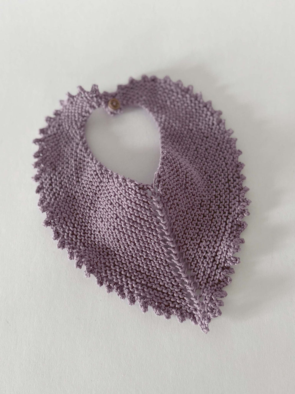 Enkel, strikket hagesmæk, som afsluttes med en flot picot-kant. Hagesmækken strikkes i Mayflower Cotton 8/4, som er et praktisk garn, da det tåler vask ved selv høje grader.