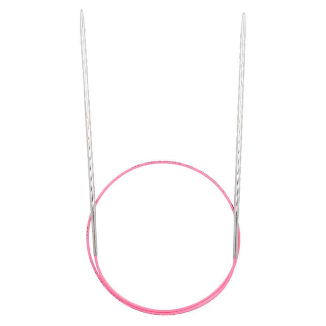 Druty okrągłe o doskonałej niemieckiej jakości od firmy Addi, która produkuje akcesoria do robótek ręcznych od 1829 roku. Marka, która dzięki serii Unicorn podnosi doświadczenie w dzierganiu na wyższy poziom. Druty z mosiądzu pokrytego białym brązem, posiadające spiralną strukturę, sprawiają, że są lekkie, a nitka łatwo przesuwa się po nich bez problemu. Końcówki drutów są zaokrąglone, co pozwala na dzierganie bez skręcania włókien nici. Kabel jest różowy, wykonany z elastycznego plastiku, a na drucie naniesione są rozmiar i długość. Druty okrągłe dostępne są w wielu różnych rozmiarach i dwóch długościach.