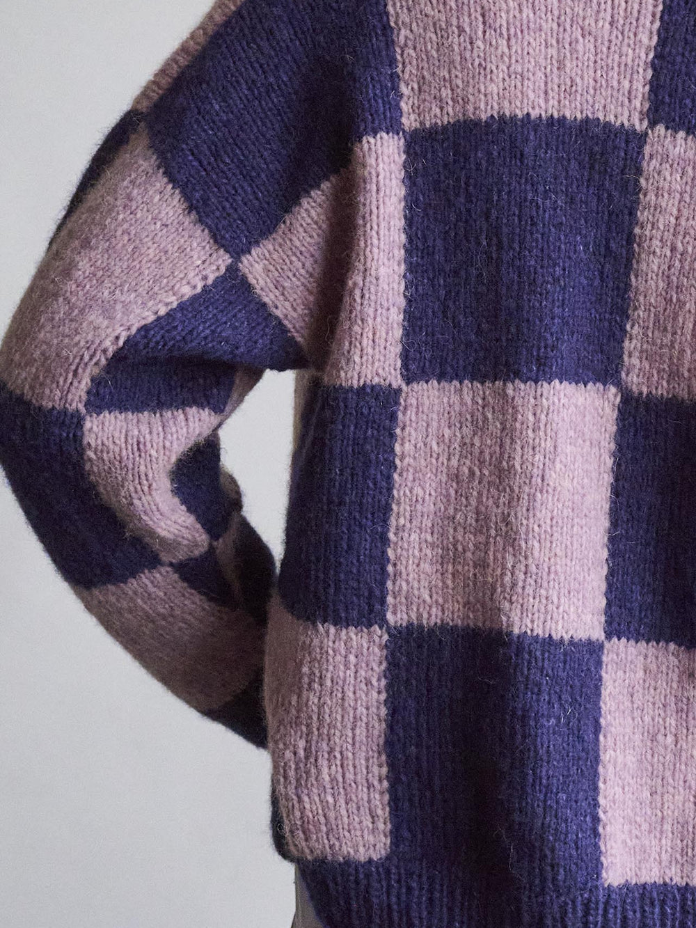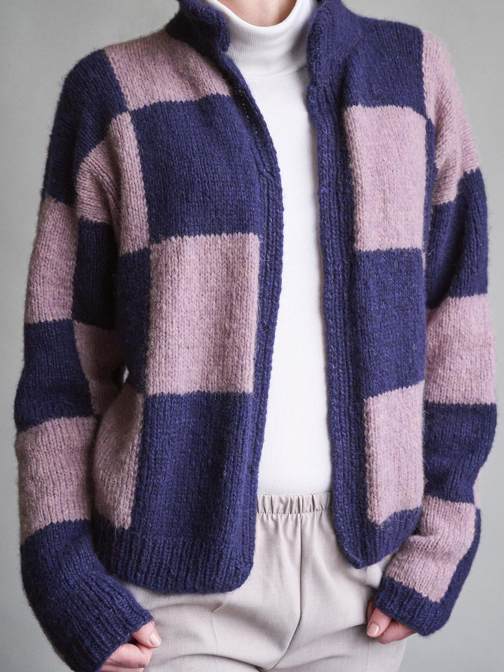 Agnes cardigan ma świetny design z dużymi kratami, guzikami i wysokim kołnierzem. Kardigan wykonany jest z przyjemnej i ciepłej przędzy, co sprawia, że idealnie nadaje się również jako kurtka na okres przejściowy.
