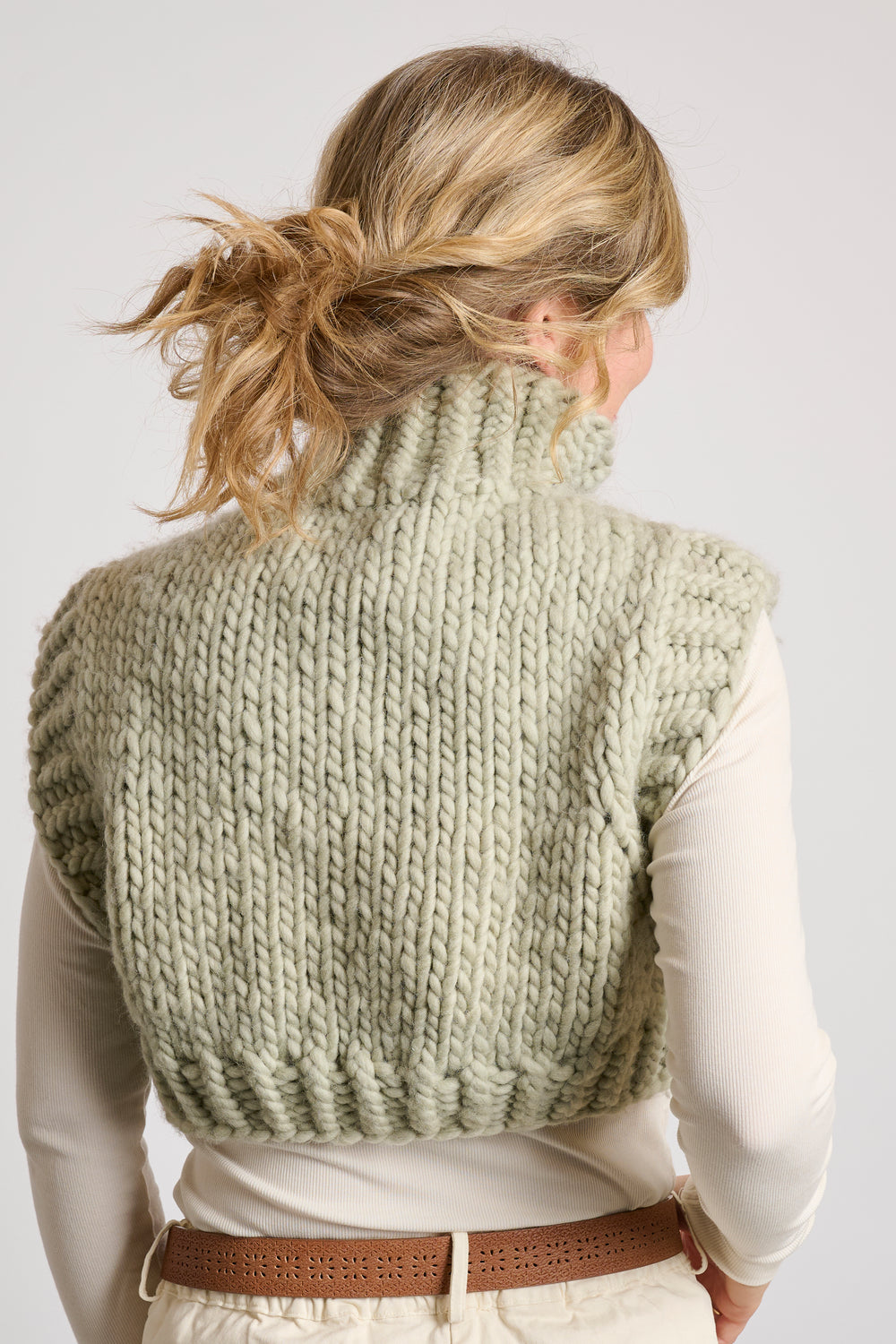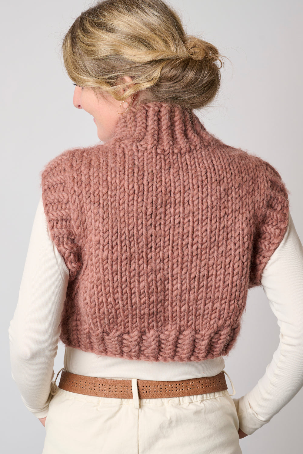 Ten uroczy bezrękawnik to ekscytujący projekt dziewiarski, który można szybko ukończyć. Kamizelka jest wykonana z szerokiego warkocza, który biegnie wzdłuż jej przedniej części. Dodatkowo wokół otworów na ramiona zastosowano ściągacz, co nadaje im dodatkową strukturę i sprawia, że kamizelka prezentuje się ciekawiej wizualnie. Alva to unikalny wzór dziewiarski – modny i łatwy do wykonania. Warkocz jest stosunkowo prosty, dlatego dziergając ten model, można świetnie poćwiczyć technikę robienia warkoczy na drutach.