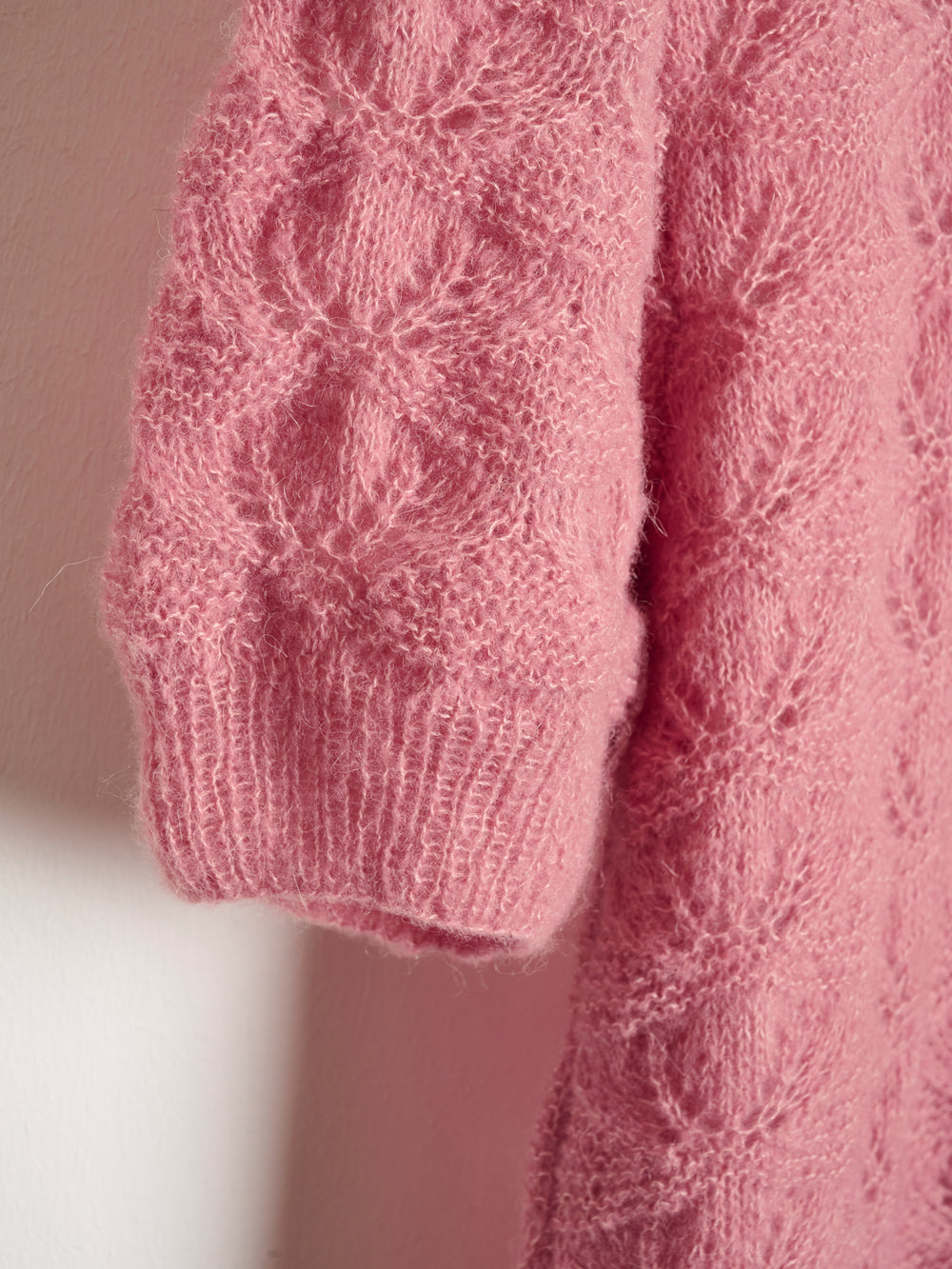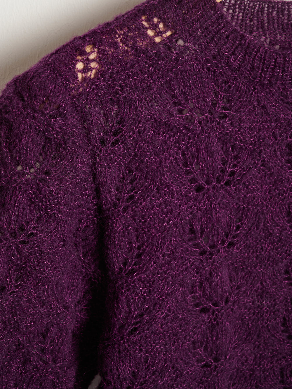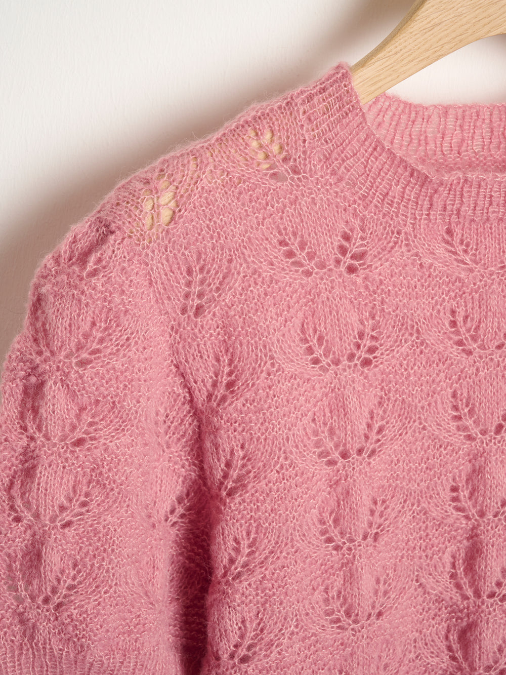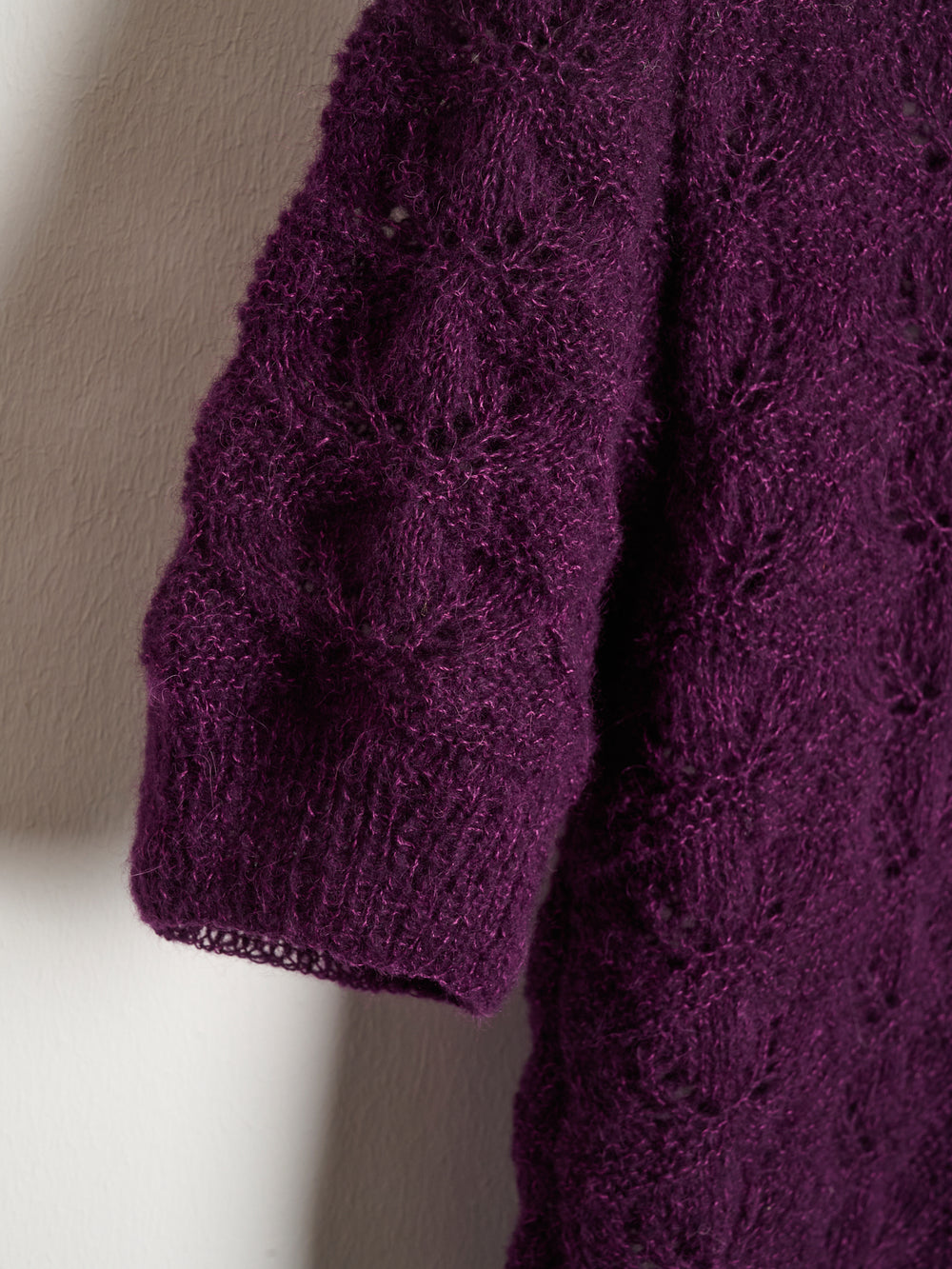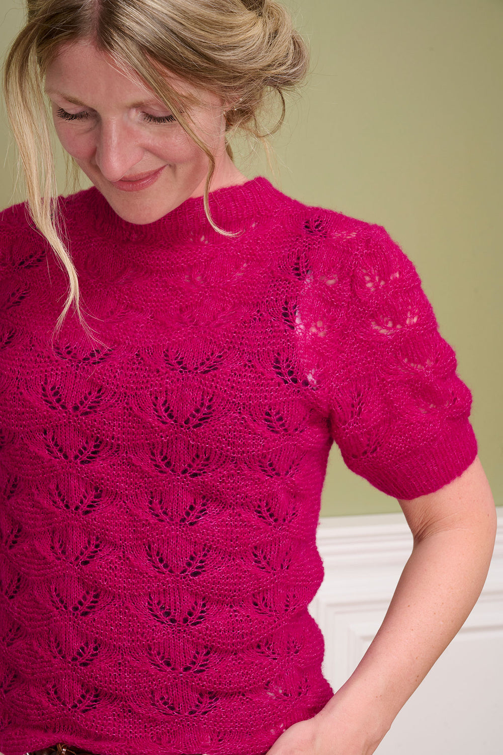 Andrea Tee to lekka i przewiewna bluzka z krótkimi rękawami, dziergana od dołu ku górze w delikatny ażurowy wzór. Wszystkie części są robione osobno, a następnie zszywane.