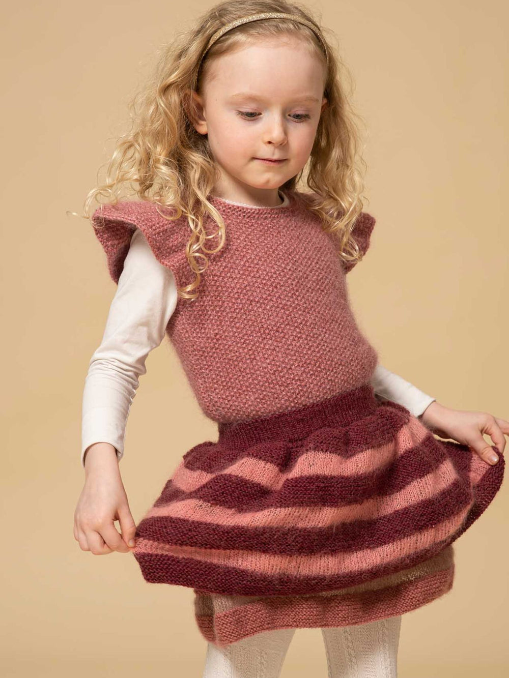 Kamizelka Dzwonek Junior to stosunkowo prosty projekt, który z łatwością wykonają średnio zaawansowane osoby. Przód i tył kamizelki dziergane są osobno, aby uniknąć skręcania się ściegu perełkowego podczas dziergania w okrążeniach. Na końcu dodaje się falbany i wykończenie dekoltu, gdy przód i tył są już zszyte.
