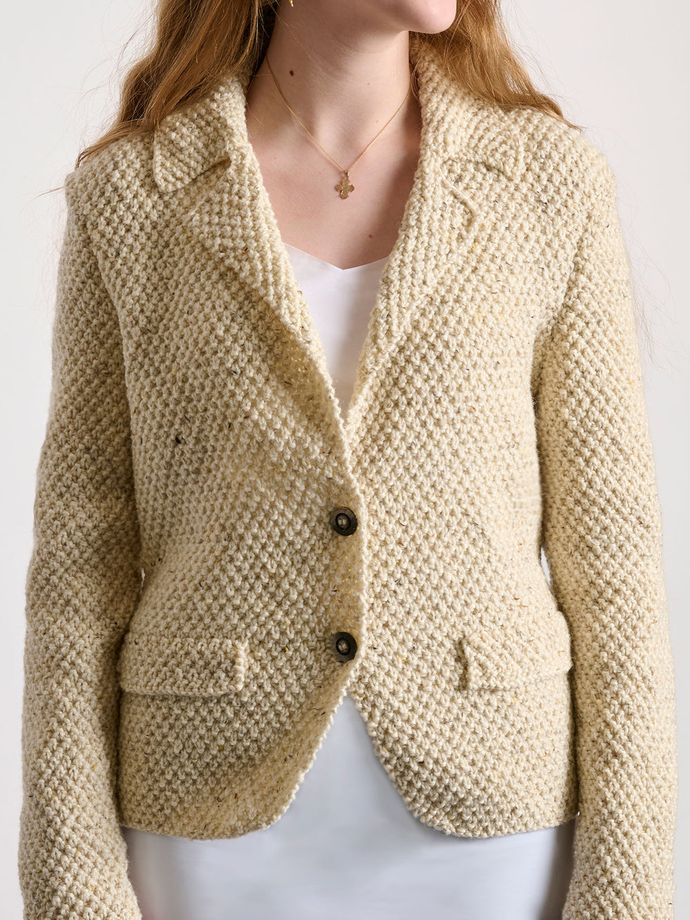 Gęstość oczek: 20 oczek x 27 rzędów w podwójnym ściegu perłowym na drutach 4,5 mm = 10 x 10 cm.