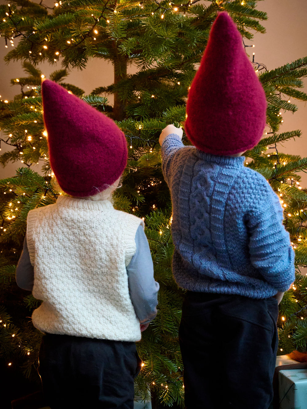 Ta wyjątkowa czapka mikołajowa jest wykonana na drutach, a następnie filcowana. Dzięki temu uzyskuje idealny, przytulny wygląd. Czapka została starannie zaprojektowana pod względem kształtu, prostoty i funkcjonalności, co sprawia, że doskonale leży na głowie i może być wygodnie noszona zarówno przez dzieci, jak i dorosłych. Świetnie sprawdza się na zewnątrz, ponieważ filcowanie sprawia, że jest bardziej solidna, a co za tym idzie – wiatroszczelna i ciepła. Wzór jest bardzo prosty, dzięki czemu każdy może go wykonać.
