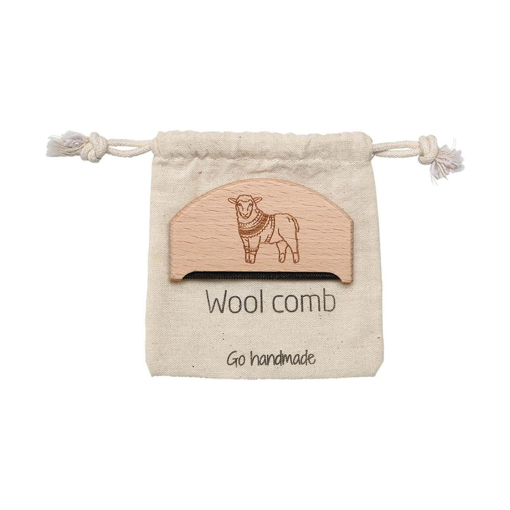 Grzebień do wełny z drewna, który możesz używać do usuwania kłaczków i nadmiaru wełny z twoich dzianinowych projektów.