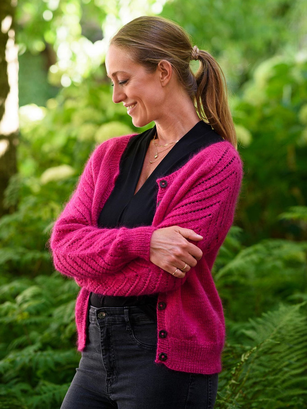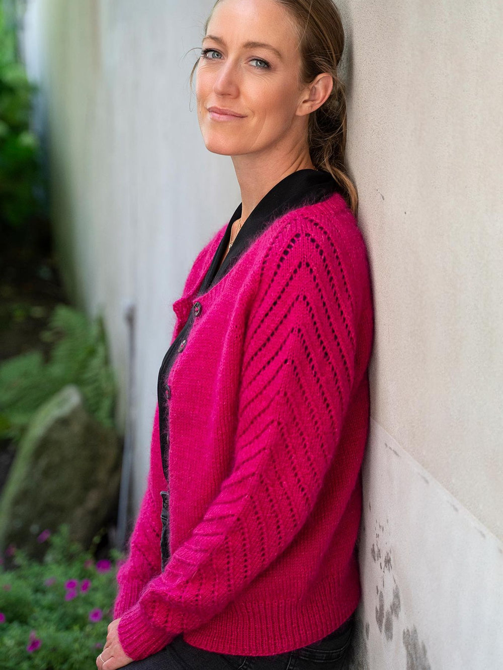 Kardigan Liva jest zarówno prosty, jak i wyrazisty, ponieważ ma gładki ścieg oraz delikatny ażur na rękawach typu raglan, co nadaje mu charakteru. Sweter jest robiony od góry do dołu z gładkim ściegiem na przodzie i tyle. Wzór poprowadzi cię dokładnie przez proces tworzenia ażuru.