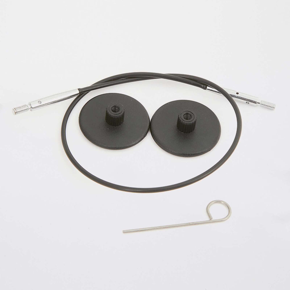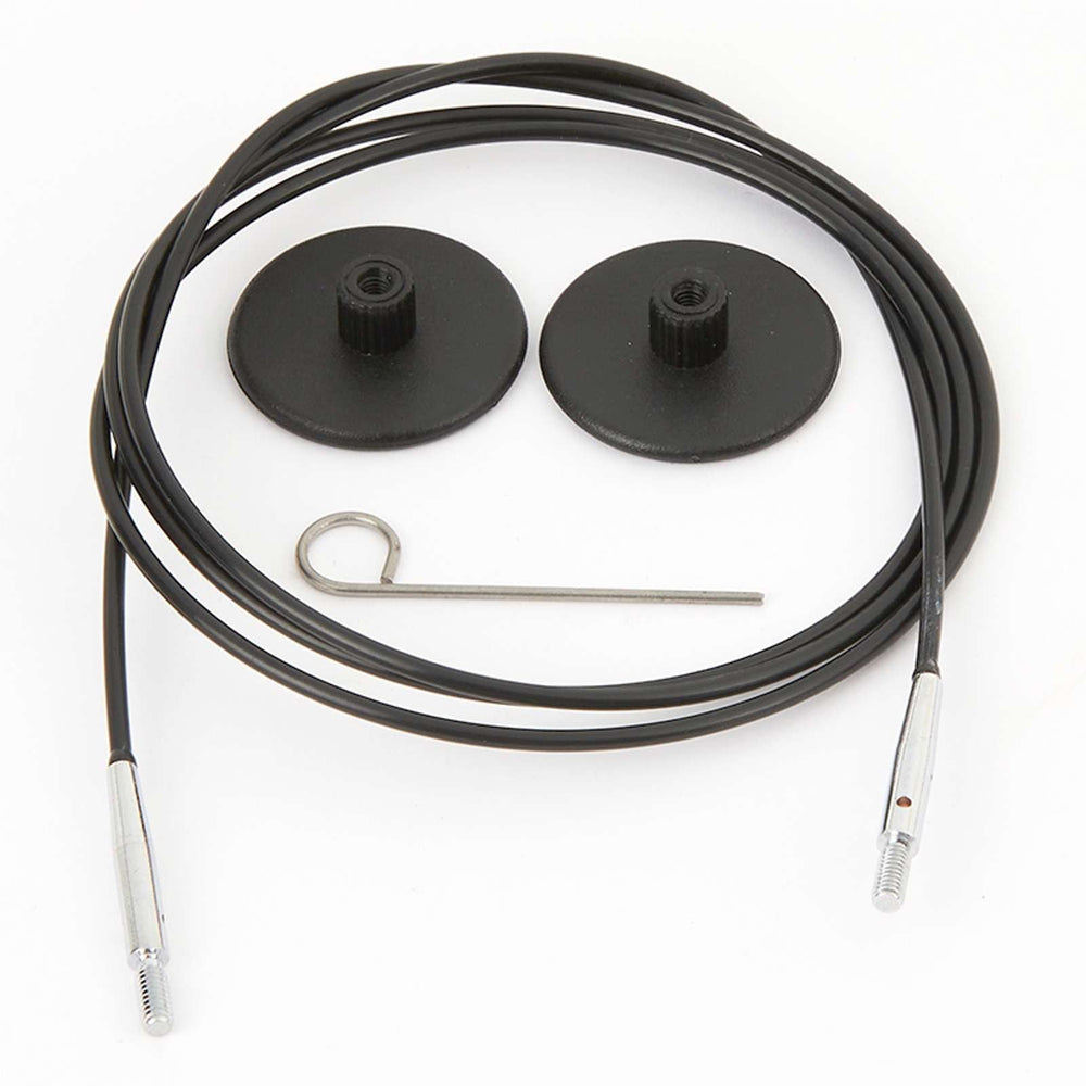 - Mocna i elastyczna żyłka stalowa, powlekana, z obrotowymi końcówkami. Żyłka posiada mechanizm obrotowy – dzięki temu nie skręca się podczas robienia na drutach. Podana długość dotyczy żyłki połączonej z drutami. Pasuje do wszystkich drutów wymiennych z seri KnitPro