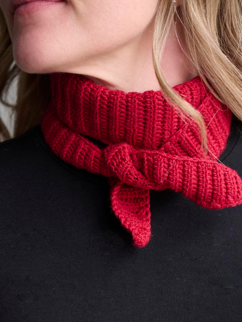 Długi wąski szaliczek / apaszka jest przyjemny w noszeniu. Jest szydełkowany z ciepłej wełny, więc możesz go spokojnie używać na zewnątrz. Ponieważ nie zajmuje dużo miejsca na szyi, możesz go także nosić w domu.