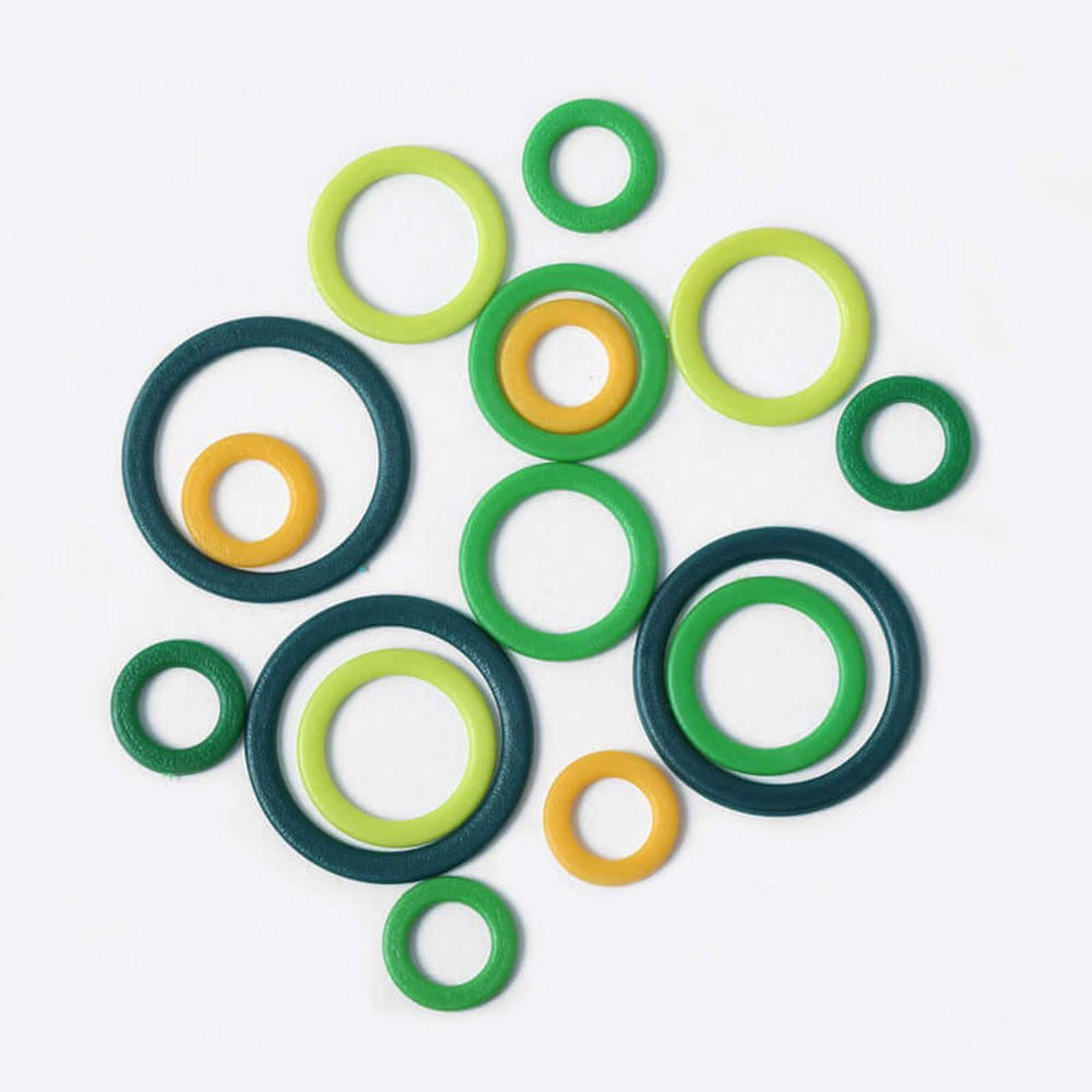 Te markery są wykonane z plastiku i mają formę pierścieni. Są bardzo lekkie i 'ciche', co oznacza, że nie zakłócają dziergania ani szydełkowania. Markery dostępne są w trzech różnych rozmiarach i pasują zarówno do cienkich, jak i grubszych drutów.