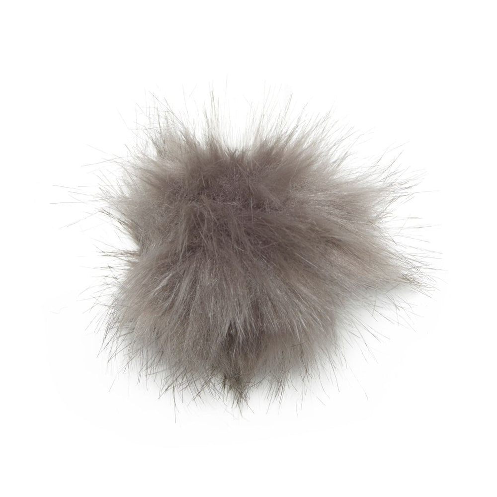 Pompon fra Mayflower Create i gråbrun kunststof, der kan bruges som en blød og sød effekt på huer, tasker mm. Den er med elastik og kan fx monteres på en knap, så den kan tages af. Mål: ca. 10 cm i diameter.