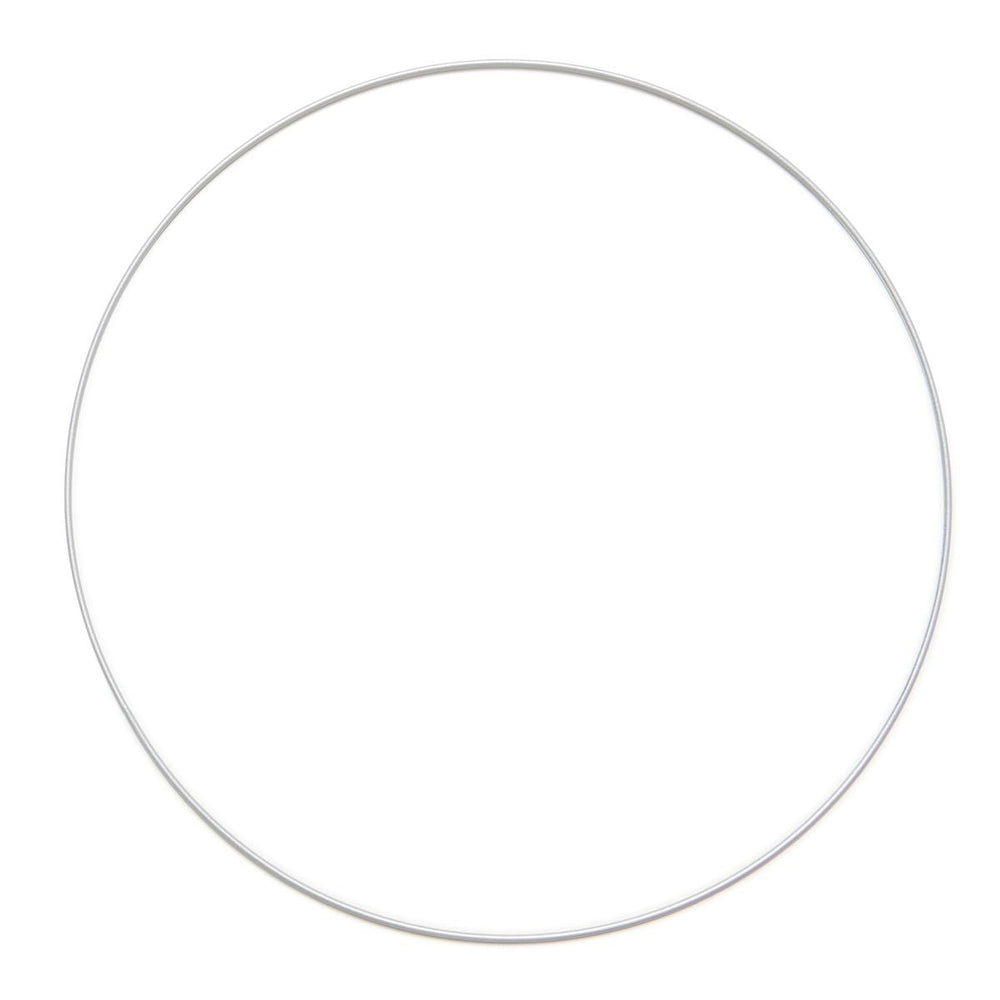 srebrna metalowa obręcz wysokiej jakości, która może być używana na przykład do wykonania mobile, łapacza snów lub innych kreatywnych projektów rękodzielniczych. Rozmiar 35 cm x 3 mm