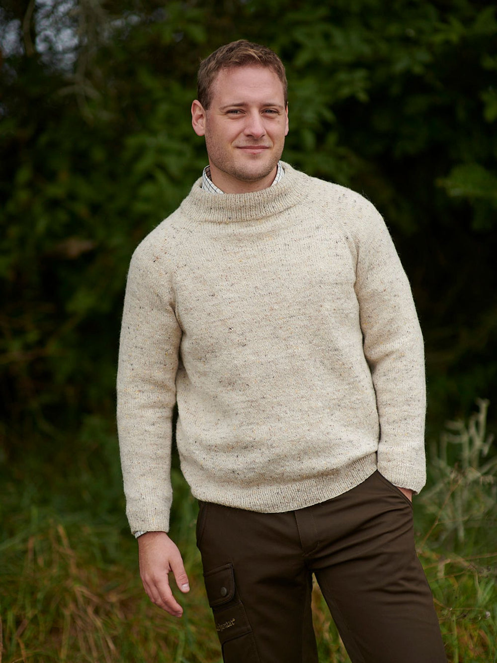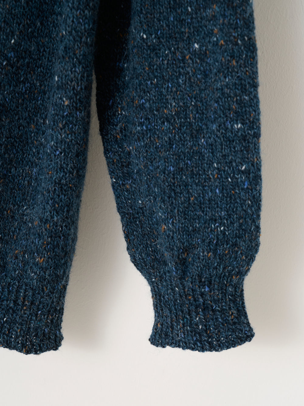 Sweter Nikolaj dziergany jest z miękkiej i wełnianej przędzy tweedowej Mayflower Birmingham. Dzięki temu sweter jest bardzo przyjemny w dotyku, a cienka jakość włóczki zapewnia, że sweter nie jest ani za cienki, ani za gruby. Można go więc nosić przez cały rok, zarówno na zewnątrz, jak i wewnątrz. Birmingham dostępna jest w wielu pięknych kolorach, a liczne tweedowe włókna tworzą interesujący efekt kolorystyczny.