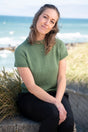T-shirt jest dziergany z miękkiej i wygodnej włóczki Mayflower Amalfi, co nadaje mu klasyczny, ale stylowy wygląd. Amalfi składa się z bawełny i wiskozy bambusowej, które są miękkimi i trwałymi włóknami. Dzięki właściwościom regulującym temperaturę, włóczka jest komfortowa zarówno latem, jak i zimą. Włóczka jest również niezwykle miękka, przyjemna w dotyku i wygodna w noszeniu, co sprawia, że T-shirt Penelope szybko może stać się ulubionym elementem garderoby do spodni, spódnic i szortów. Klasyczny krój sprawia, że t-shirt pasuje do większości ubrań i na wiele okazji.