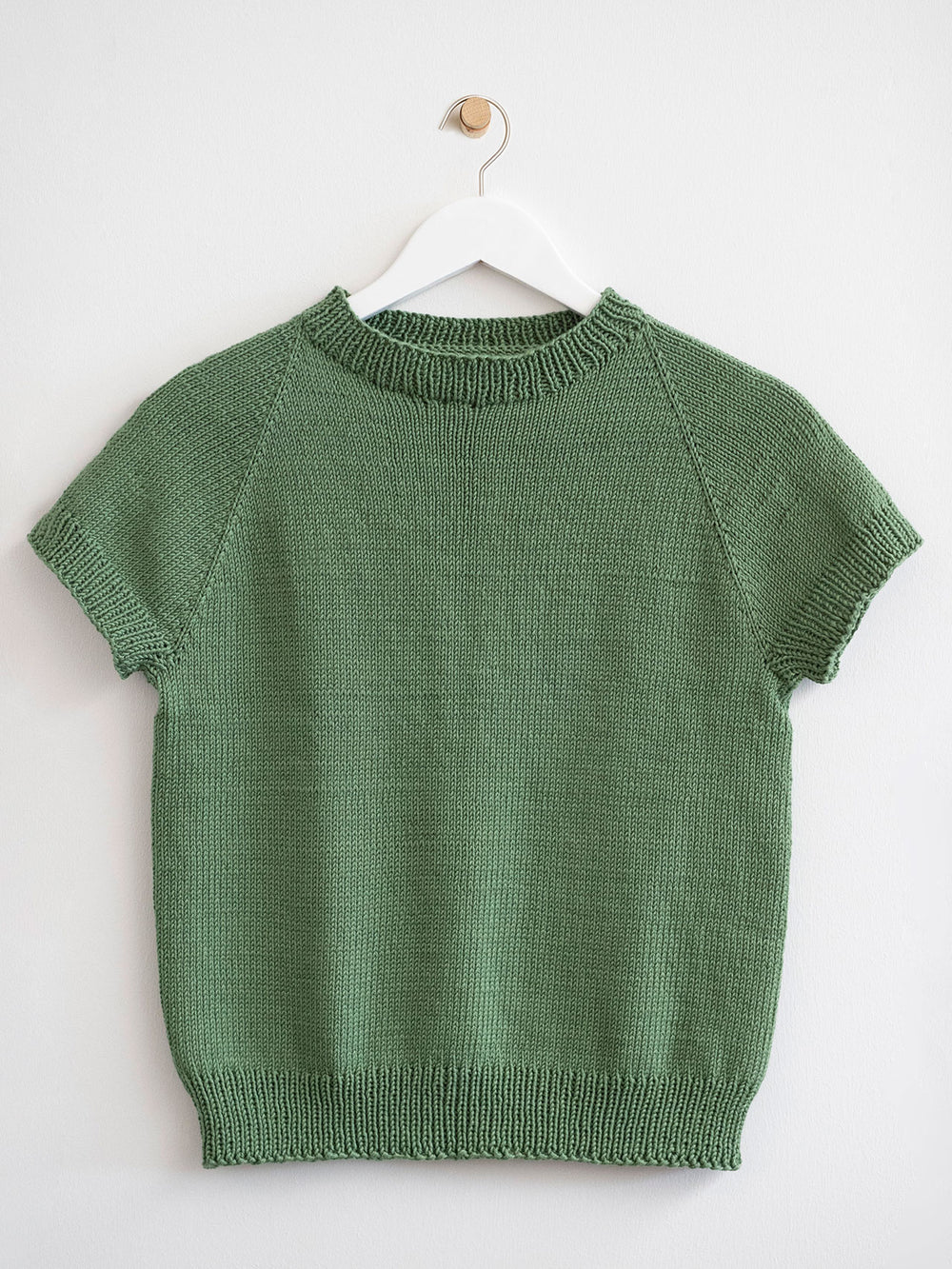 T-shirt Penelope to klasyczny i prosty t-shirt dziergany od góry w ściegu gładkim. Ma krótkie rękawy, eleganckie raglanowe wycięcia oraz ściągacze. T-shirt Penelope jest idealny do noszenia przez cały rok – latem można go nosić z odsłoniętymi ramionami, a zimą można go założyć pod kardigan lub sweter. Prosty projekt w ściegu gładkim od góry do dołu sprawia, że wzór jest bardzo przyjazny dla początkujących.