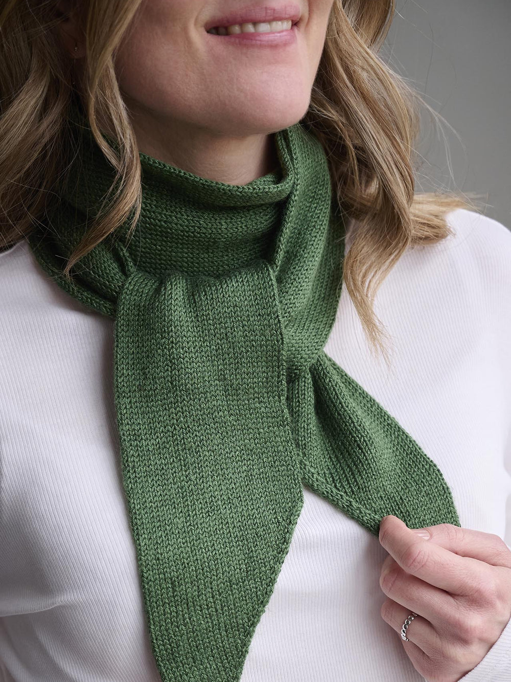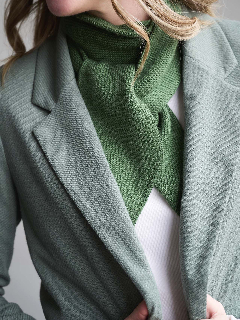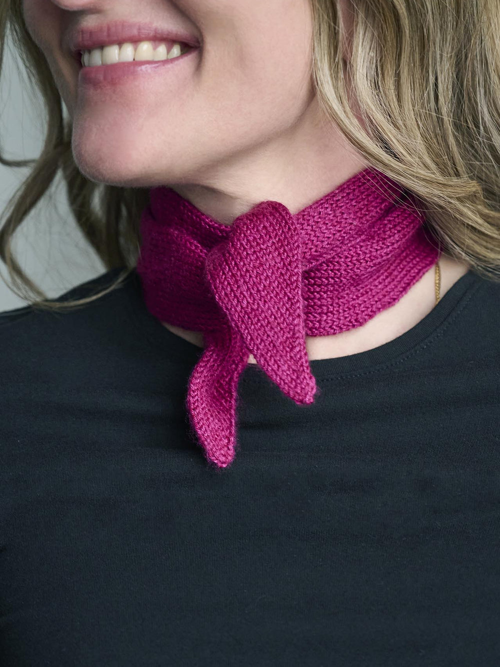 Spencer Scarf ma bardzo prosty design z ostro zakończonym końcem, który uzyskuje się dzięki stopniowemu ujmowaniu oczek. Szalik można wykonać w dwóch rozmiarach: małym i dużym. Wzór jest łatwy do wykonania, dzięki czemu nadaje się również dla początkujących.