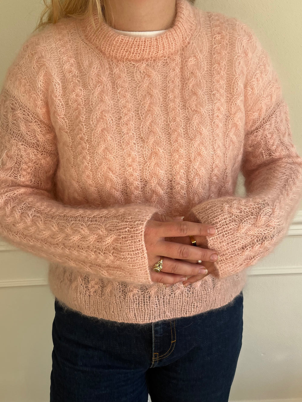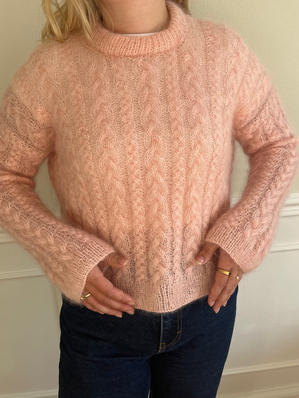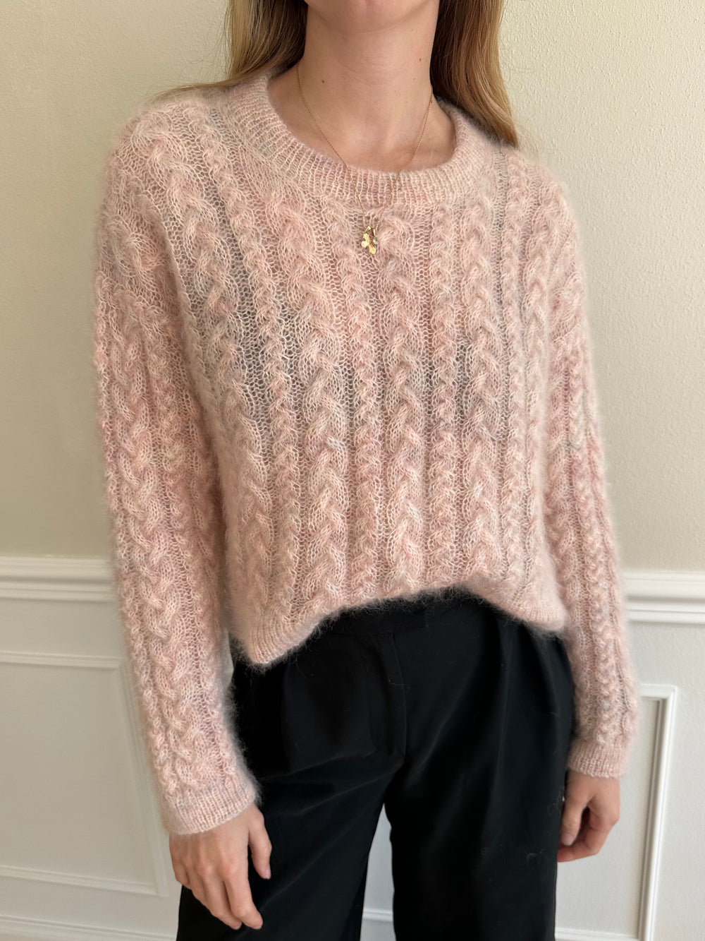 Sweter robiony jest od góry do dołu. Oczka są nabierane metodą Judy's Magic Cast On, z czego połowa oczek tworzy tył, a druga połowa stanowi ramiona oraz wykończenie dekoltu.