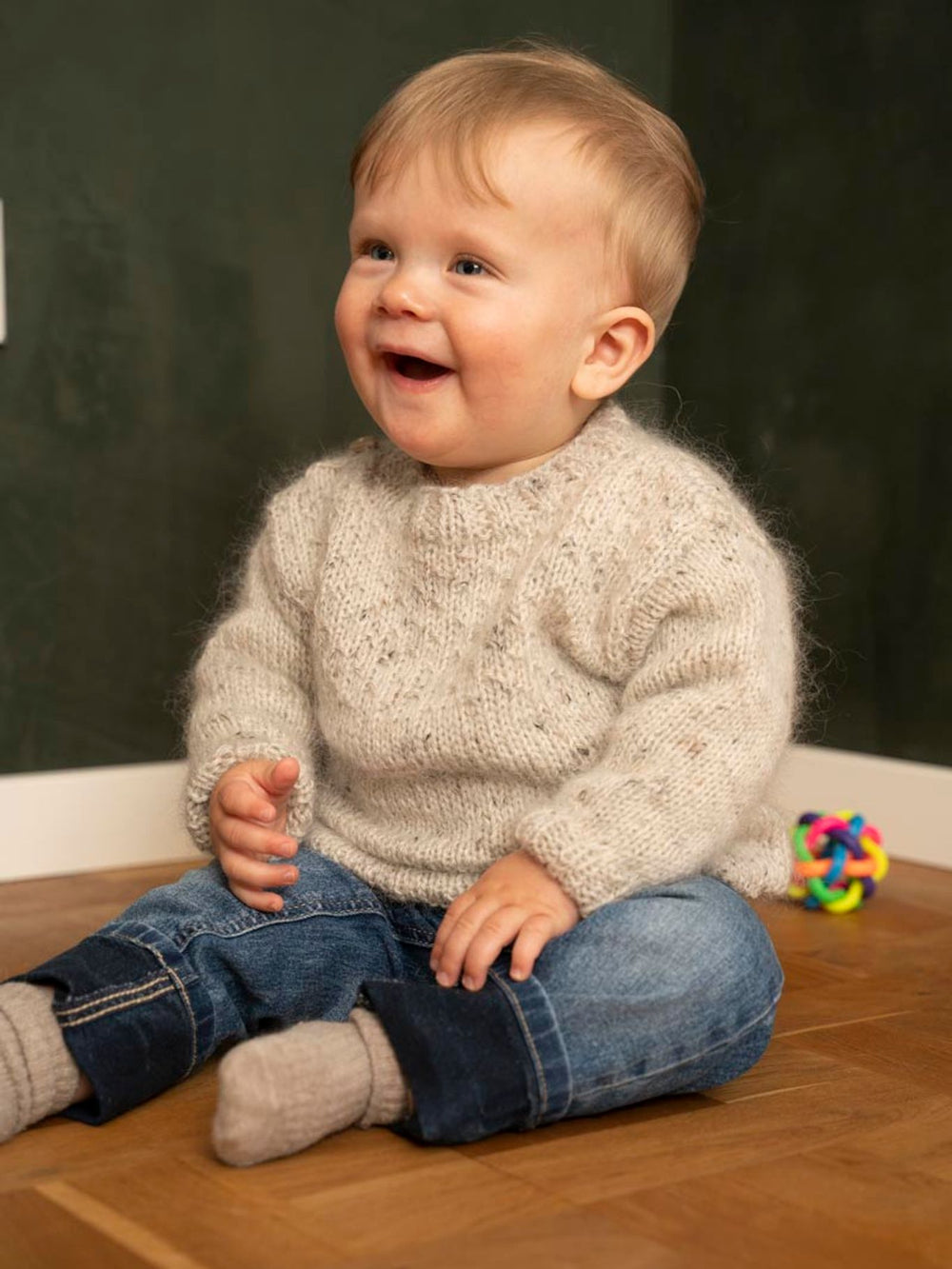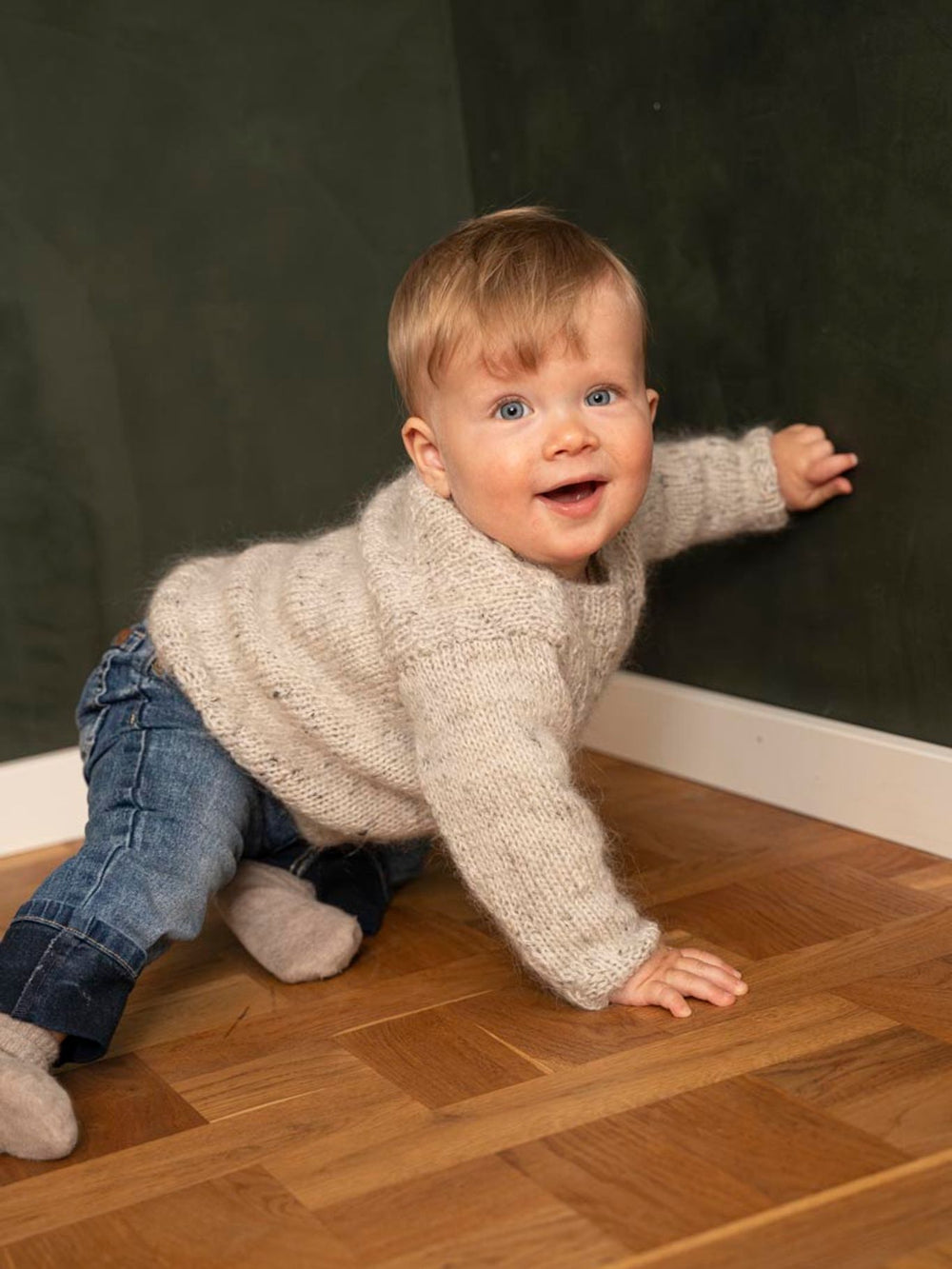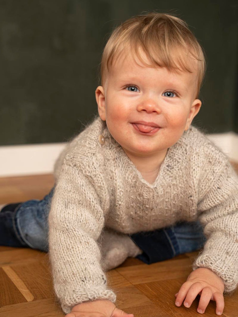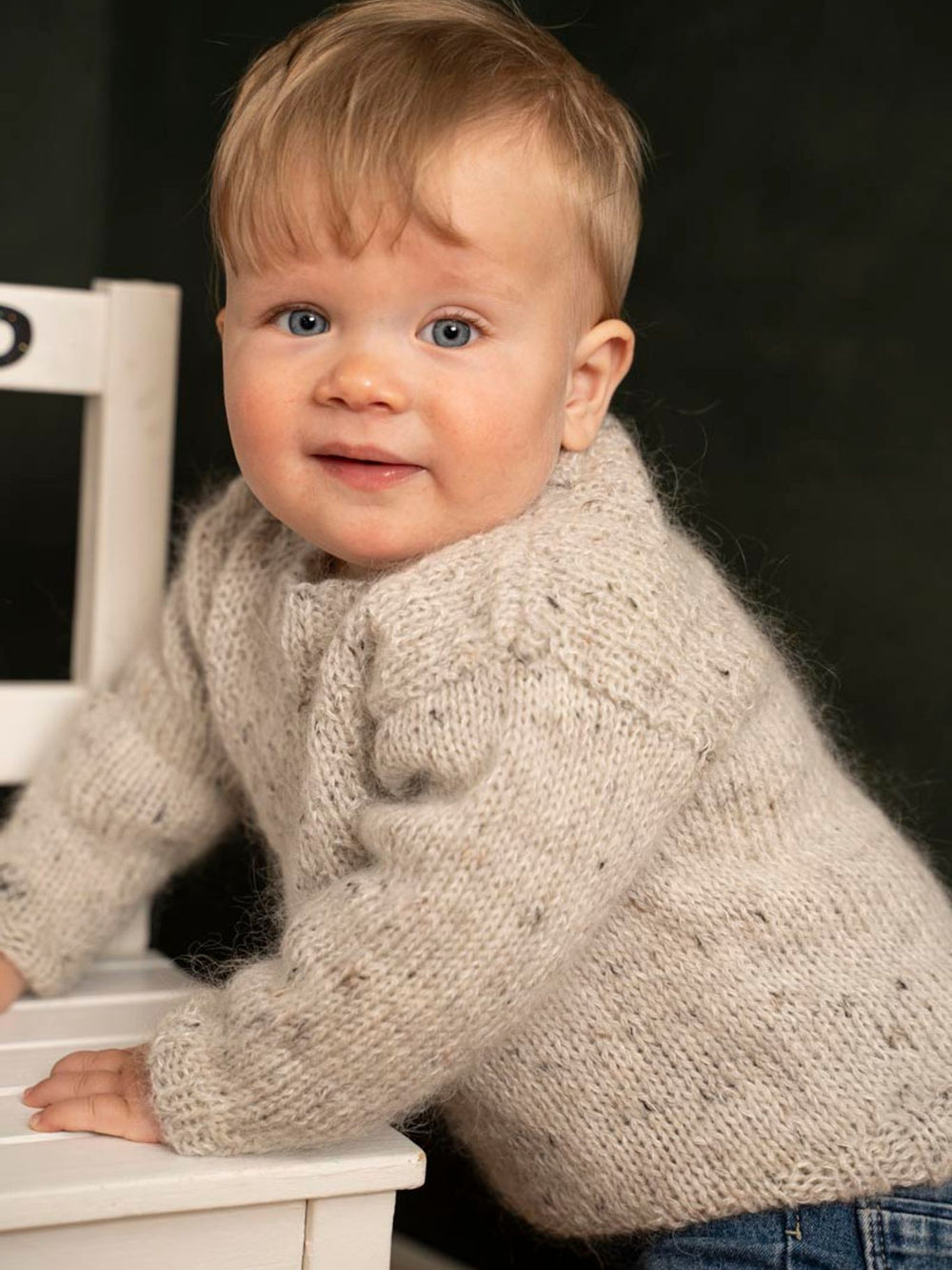 Najdelikatniejszy sweter z ciepłej włóczki, który utrzyma małą pociechę w cieple, zarówno w wózku, jak i w chłodniejsze dni.