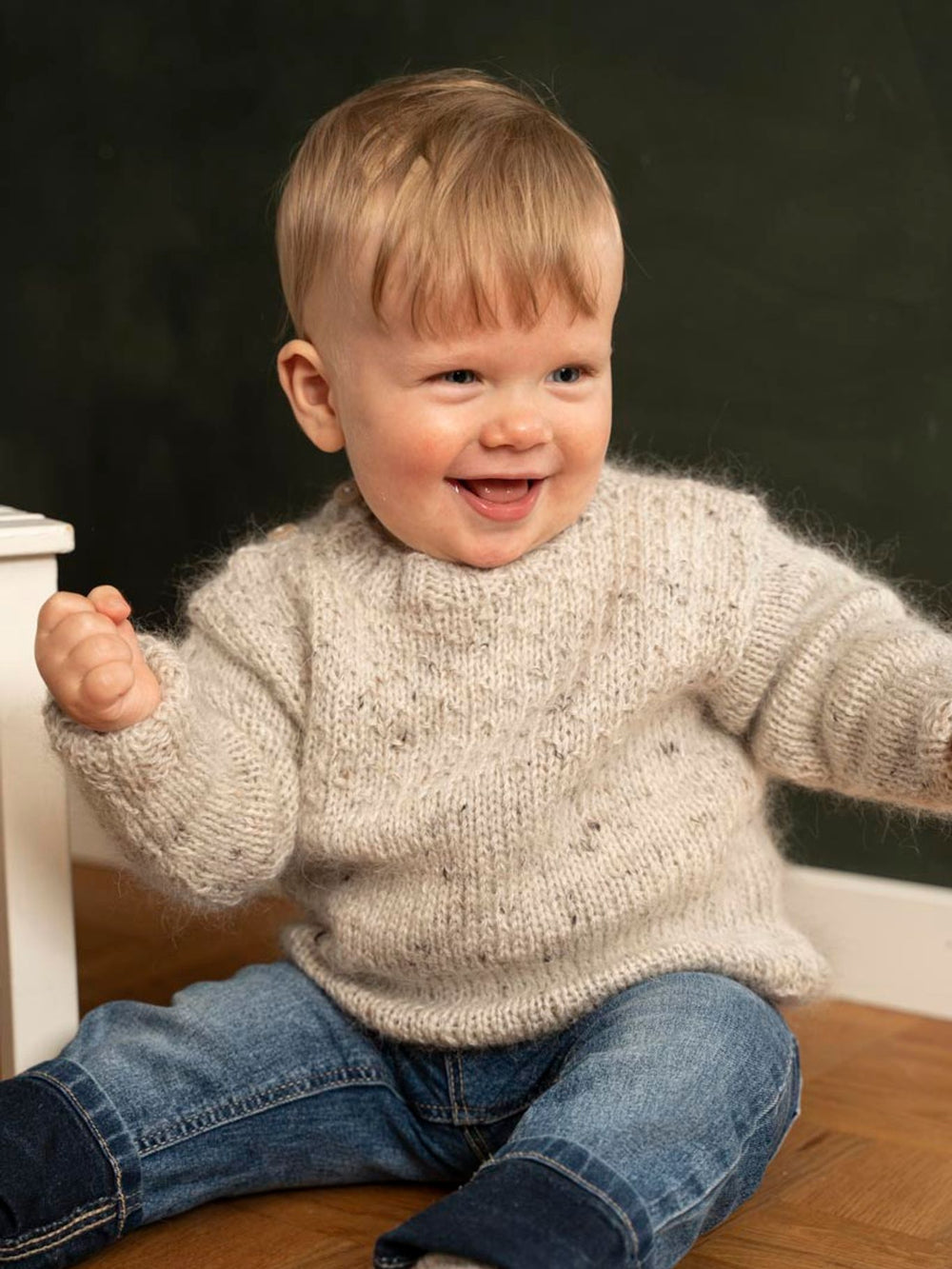 Sweter "Pradziadek" dziergany jest z podwójnej nitki składającej się z jednej nitki Mayflower Easy Care Tweed i jednej nitki Mayflower Super Kid Silk. Ta kombinacja zapewnia niesamowicie miękką i puszystą jakość, która sprawia, że sweter jest przyjemny i wygodny w noszeniu. Tweedowe włókna dodają swetrowi życia i efektów kolorystycznych, a włóczka dostępna jest w wielu pięknych kolorach. Sweter jest łatwy w utrzymaniu, ponieważ włóczka została poddana obróbce superwash, co pozwala na pranie w pralce.