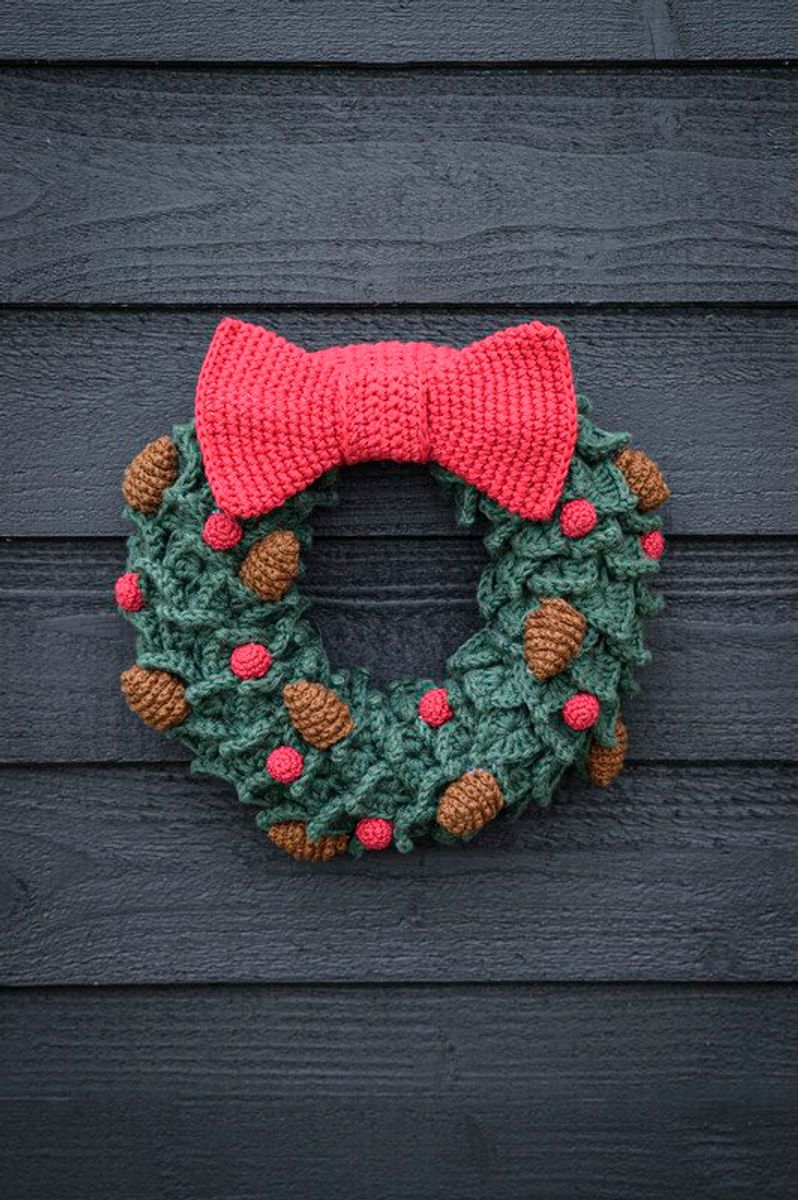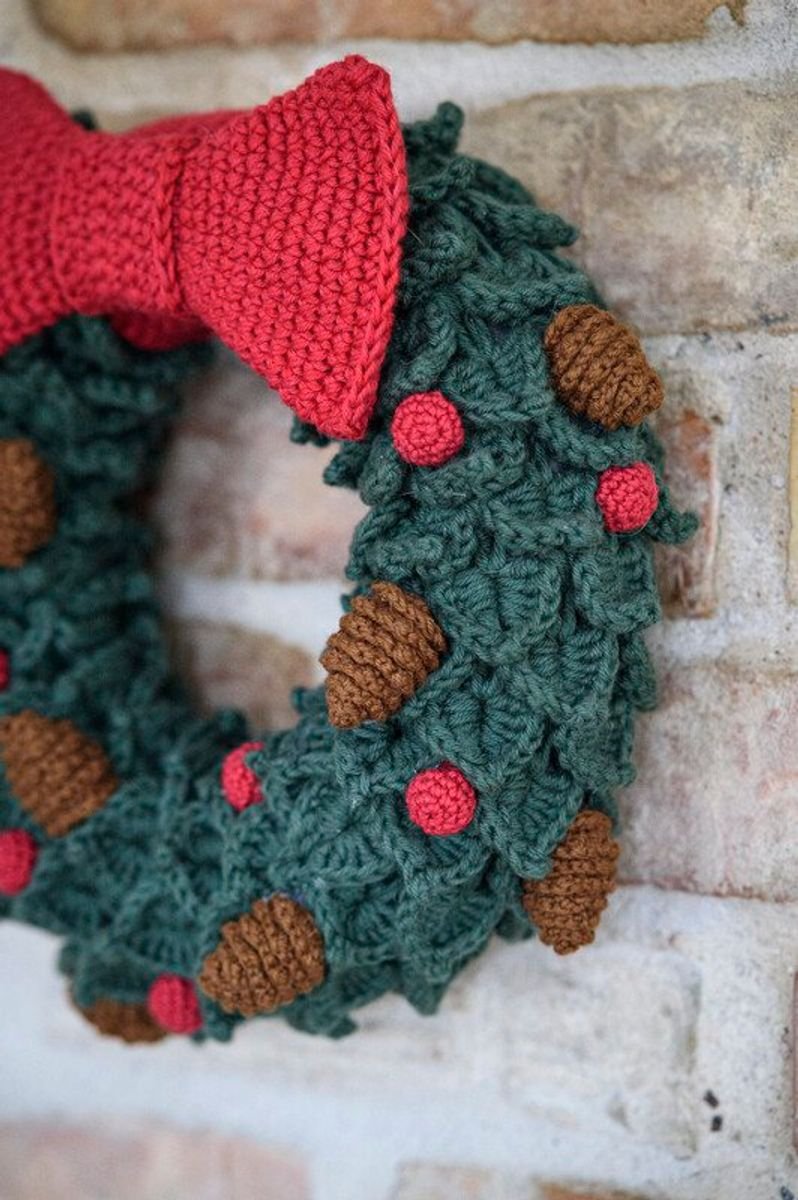 Możliwości w zakresie szydełkowanych ozdób świątecznych są niemal nieskończone, a oto nasza propozycja – szydełkowy wieniec, który można zawiesić na ścianie lub drzwiach. Wieniec ma realistyczny wygląd, dzięki czemu z daleka niemal można uwierzyć, że jest prawdziwy.