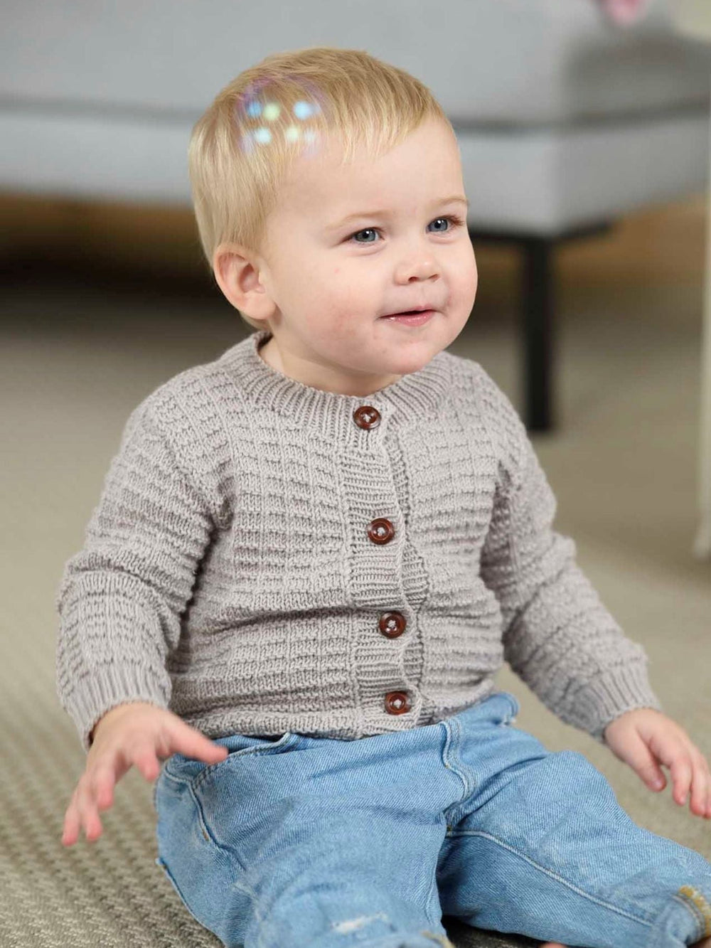 Kardigan jest naprawdę miękki i przyjemny w dotyku, ponieważ robiony jest z Mayflower London Merino Fine, który jest wspaniałą włóczką wełnianą z ekstra cienkiej merino. Kardigan jest więc niezwykle komfortowy i przyjemny dla delikatnej dziecięcej skóry. Wełna jest oddychająca i ciepła, dzięki czemu dziecko może nosić kardigan przez większość roku.