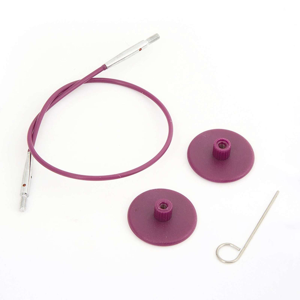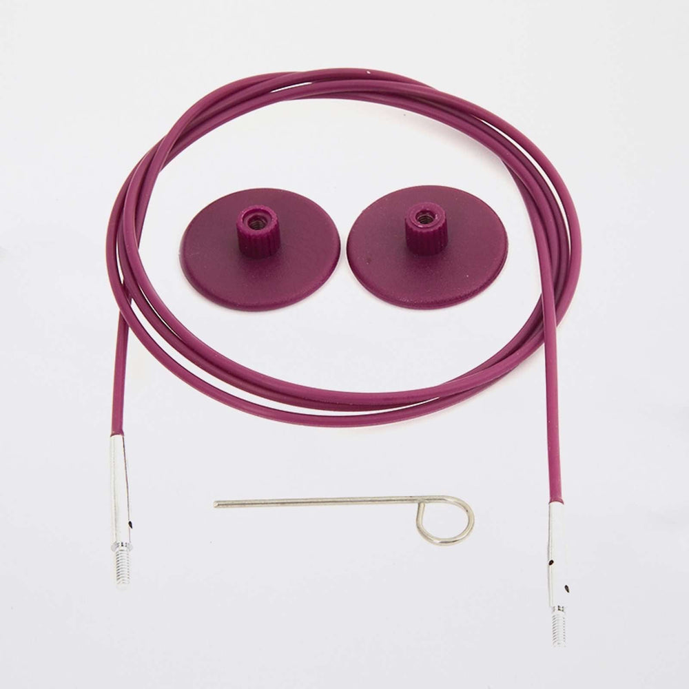 - Mocna i elastyczna żyłka stalowa, powlekana, z obrotowymi końcówkami. Żyłka posiada mechanizm obrotowy – dzięki temu nie skręca się podczas robienia na drutach. Podana długość dotyczy żyłki połączonej z drutami. Pasuje do wszystkich drutów wymiennych z seri KnitPro