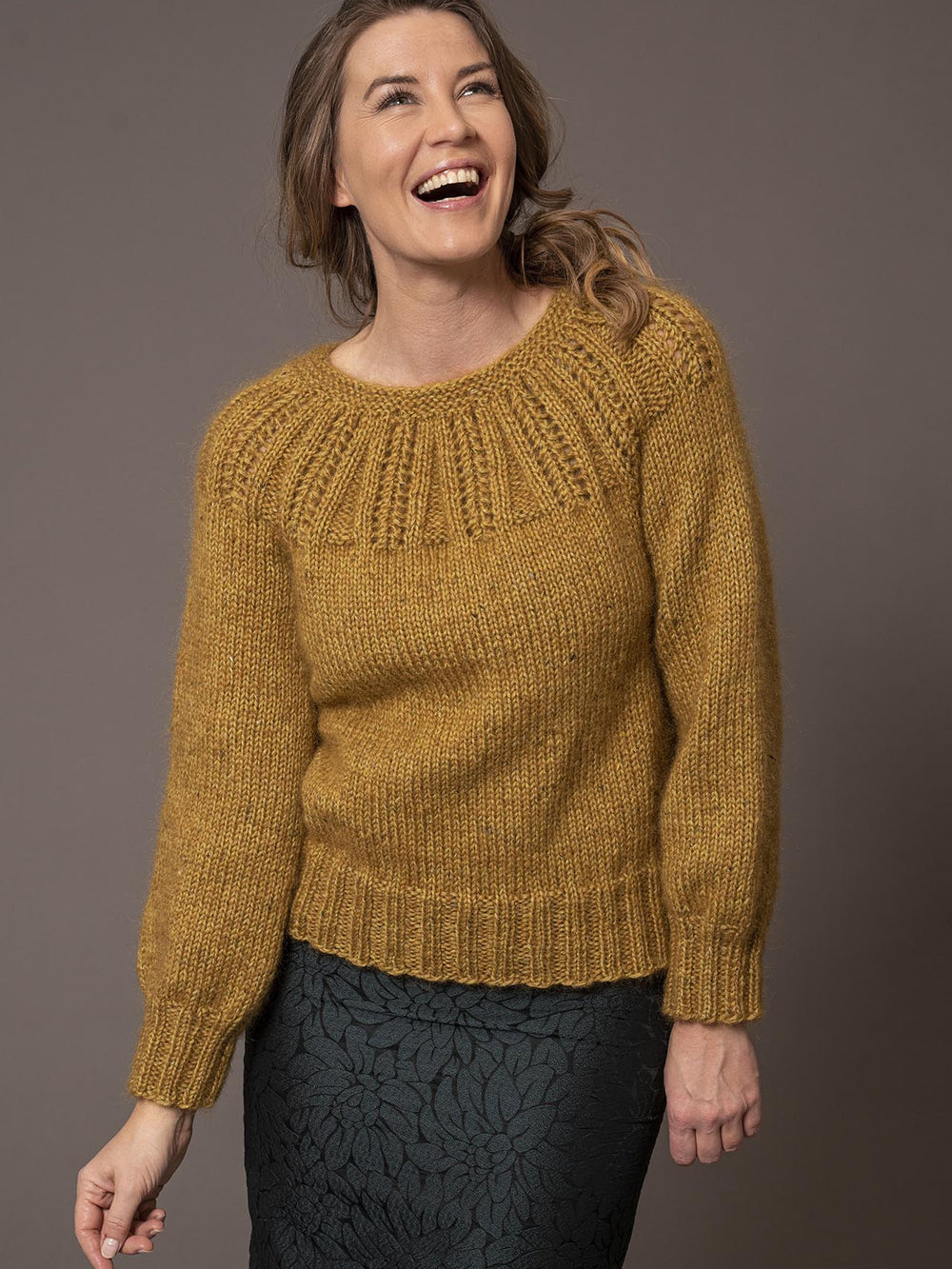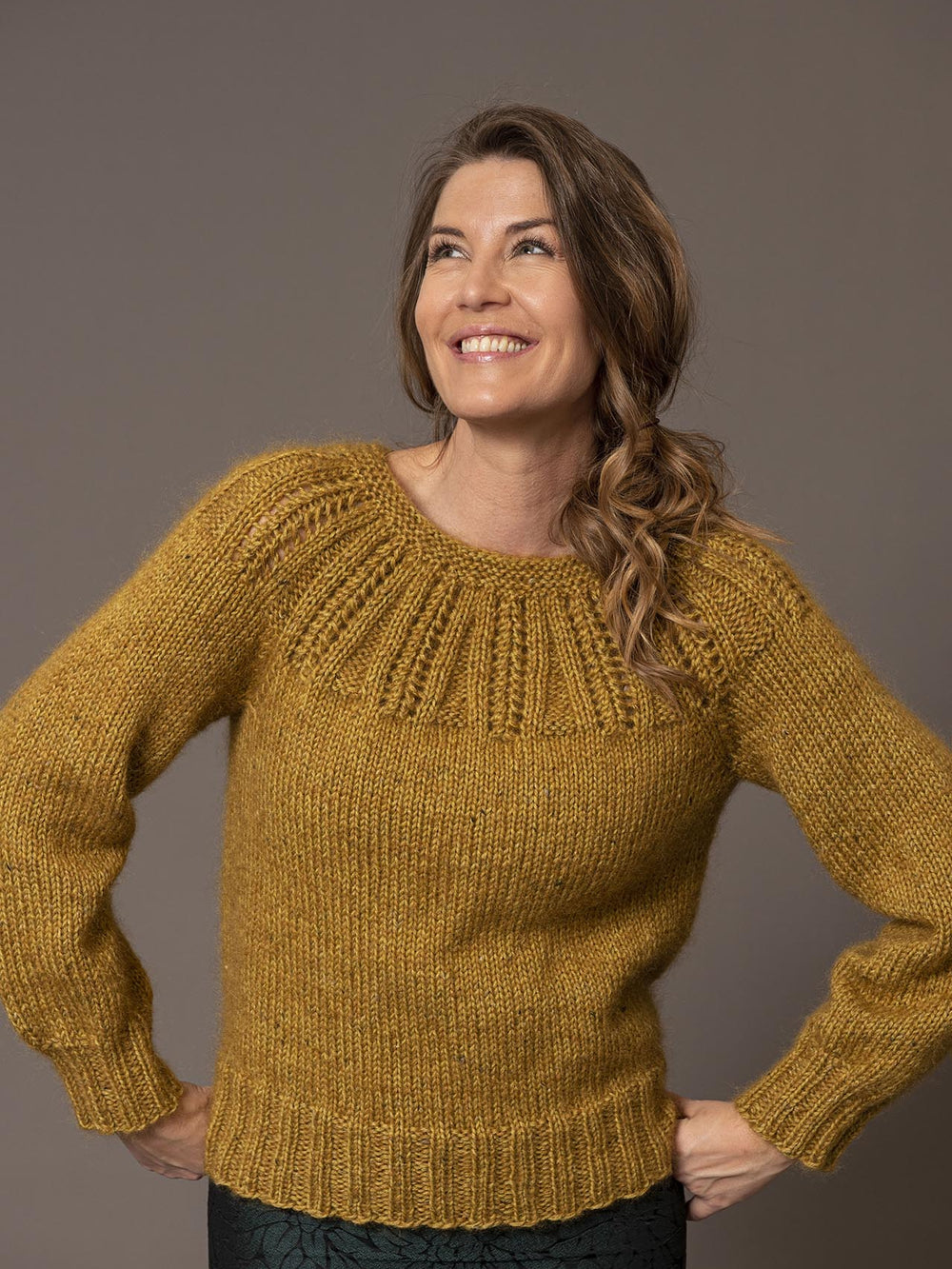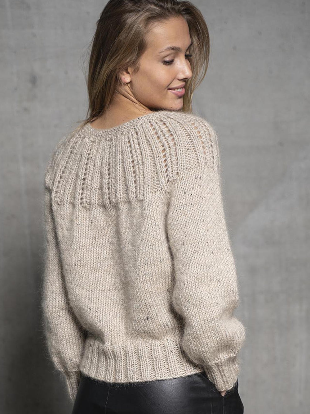 To doskonały projekt dla osób, które chcą zrobić sweter bez zszywania, dziergany od dołu do góry. Największym wyzwaniem jest proste ażurkowe zdobienie na karczku, ale do jego wykonania nie trzeba być ekspertem w robieniu na drutach.